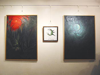 「 BLUE 」「 GREEN 」「 RED 」に続くタコ企画ライブ第四弾「 MOON 」タコ作品の中から、月がメインの作品をチョイスして飾る。