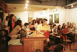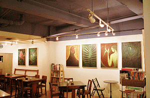 個展期間中に会場にてライブも行った。カウンターにまでお客が入るという大盛況ぶり。