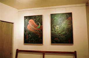 新作B1パネル作品8点と過去の作品を少々展示。この時の作品はポストカードはもちろんの事、カレンダーや、ポスターを作ったり、デザインフェスタ等のイベントでもよく展示していたので、露出度が高い。画面を覆うように書かれたタコ文字が印象的。