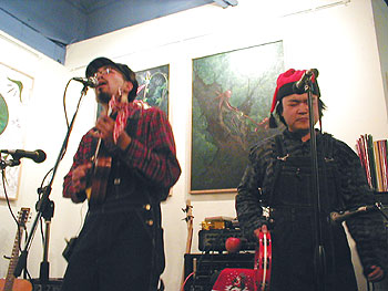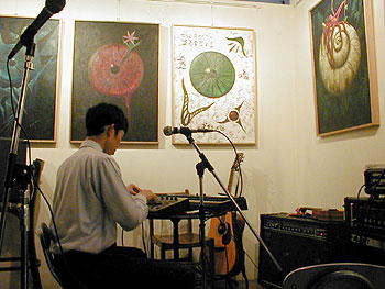 マニアの間ではすでにカリスマ、スッパマイクロパンチョップ。お客に背を向けて演奏という掟破りなライブ。事前に用意したサンプリング音源を無作為にその場で繋いでいく。これが意外にポップなのは、やはりセンスの成せる業か。