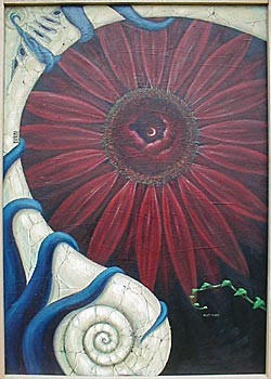 この年、結婚。入籍した日に植えたひまわりが紅い花を咲かせた。非常に印象的な紅だったので、それを描いてみた。