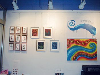 左側の小作品群と、右側のB2サイズ2枚はアクリル作品。