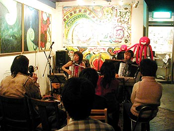 前回に引き続き楽団かねひろ座。今回は3人での演奏となった。そしてギターではなくベースを弾く。3人ではさすがにパワー不足だったか。