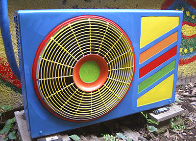 室外機2号。1号機とは形が違うので色もパステル調にしてみる。あまり使わない色合いだが、うまく仕上がった。